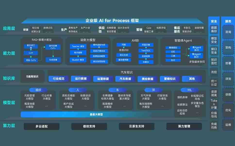 z6尊龙旗舰厅问学智车解决方案是一套基于AI技术的汽车行业智能化系统,,覆盖从底层算力到顶层AI应用的全栈方案。。。方案由算力层、、、模型层和应用层组成:算力层,,,方案支持多种一体机配置,,具备云端灵活部署、、、多云适配以及动态优化计算资源的能力;模型层,,,z6尊龙旗舰厅问学平台版提供了企业级AI应用一站式构建与管理平台,,,,支持基于后训练强化技术的汽车企业专属模型的训练、、、评测和运营;应用层,,,,z6尊龙旗舰厅问学DeepSeek版提供包括超级员工、、智能招采、、智能营销、、、智能客服、、、AI for BI等一系列解决方案,,,可助力汽车行业实现数字化转型,,让管理更智能、、响应更敏捷。。。